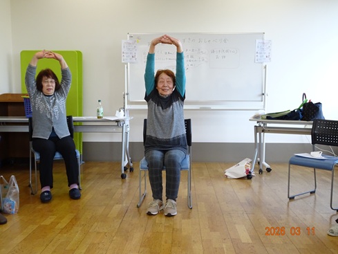 次は恒例の島峯さんによる頭の体操クイズ、村山さんによるミニストレッチ体操を皆さんで楽しみました。